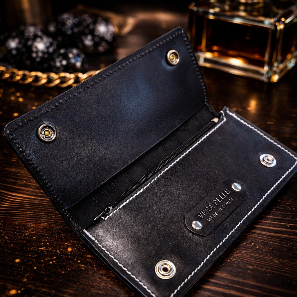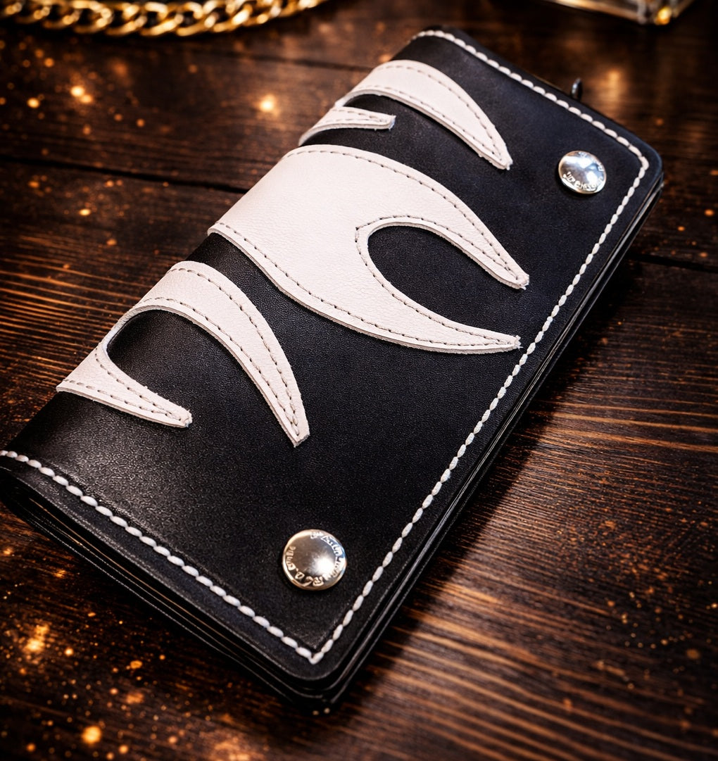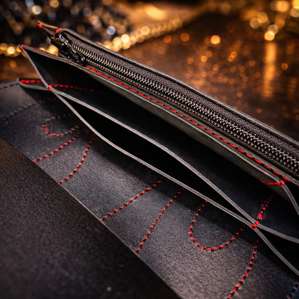 Echtleder Portemonnaie handbemalt 'Krähe mit Rosen'