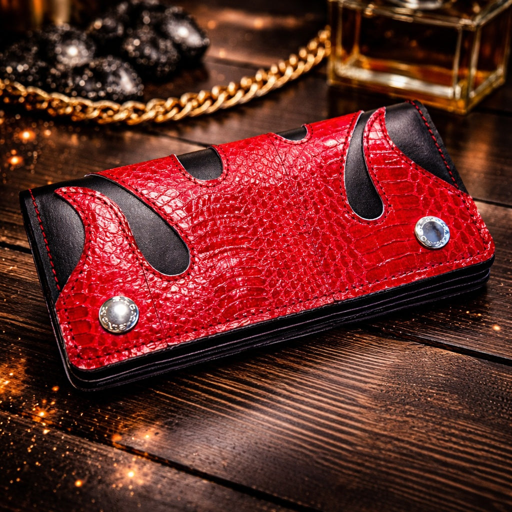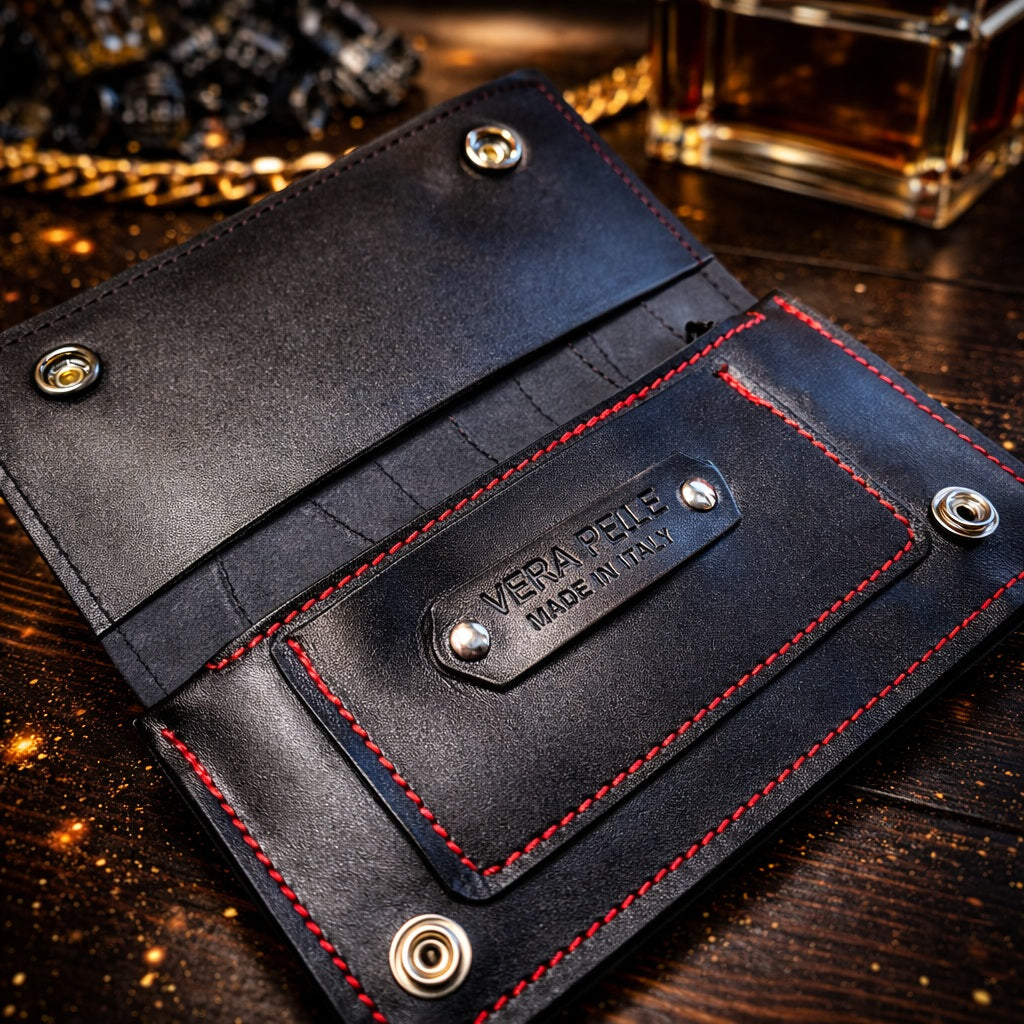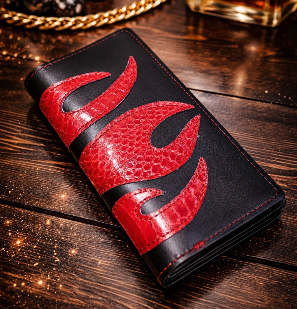Echtleder Portemonnaie handbemalt 'Krähe mit Rosen'
